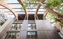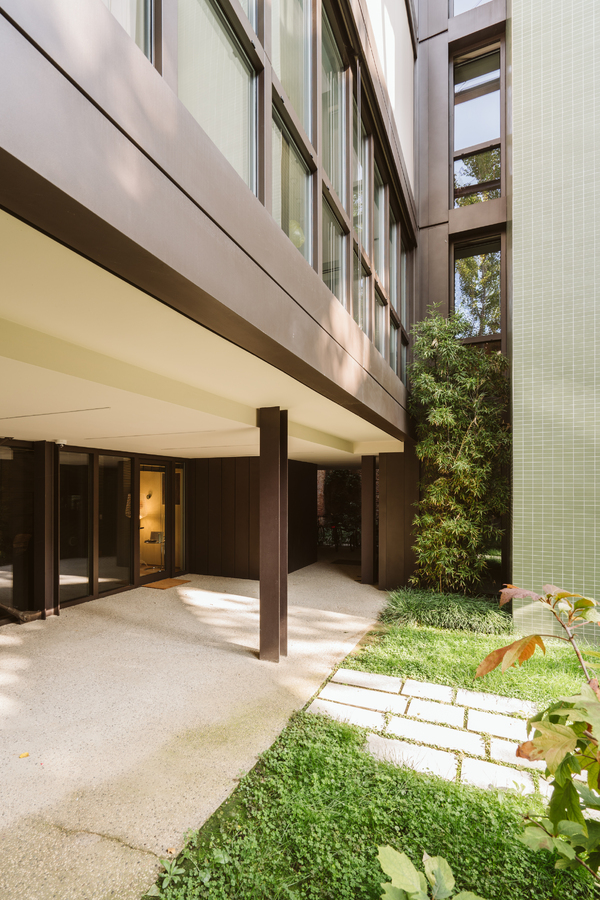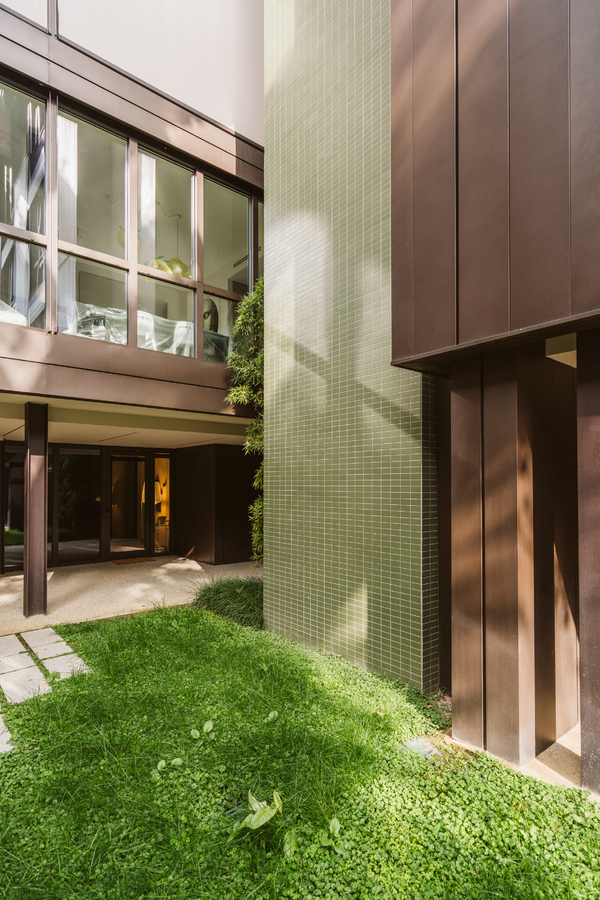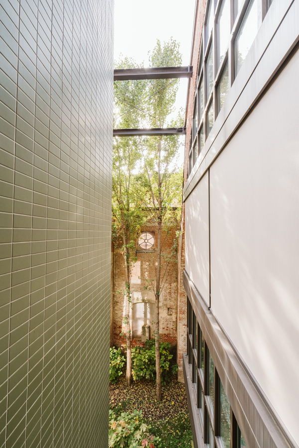 From the very outset, preserving the garden has been one of the key aims of the redevelopment project: the new structure is integrated into the existing building, occupying only part of it; it comprises two L-shaped blocks and extends over four levels.