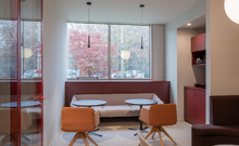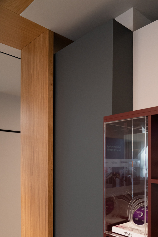Project: Domenico Farinaro, Stefania Micotti, Franco Rosi. Photos: Vincenzo Pagliuca. The project for the new Demant offices – a Danish multinational company operating in the healthcare sector – is situated on the ground floor of a commercial building, which is largely unremarkable and lacks any apparent architectural features to highlight within the design process. The intention was not to emphasise the all-too-often-used dichotomy between work areas and so-called special areas, but rather to transform the space by creating a continuum of environments, clearly defined from one another yet characterised by the same comfortable and chromatically enveloping atmosphere.